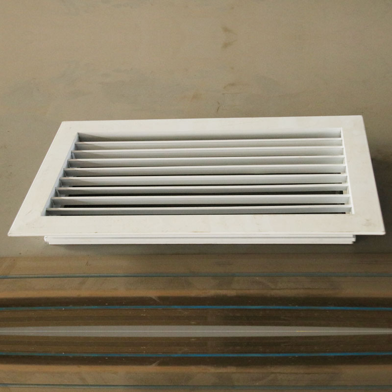 單層可調百葉風口常用於管道中的(de)吸、送風用,同時可根據實際情況配上人(rén)字閘(多葉對開調(diào)節閥),用(yòng)以控製風量或安裝鋁(lǚ)合金過(guò)濾器,進行配套使用。