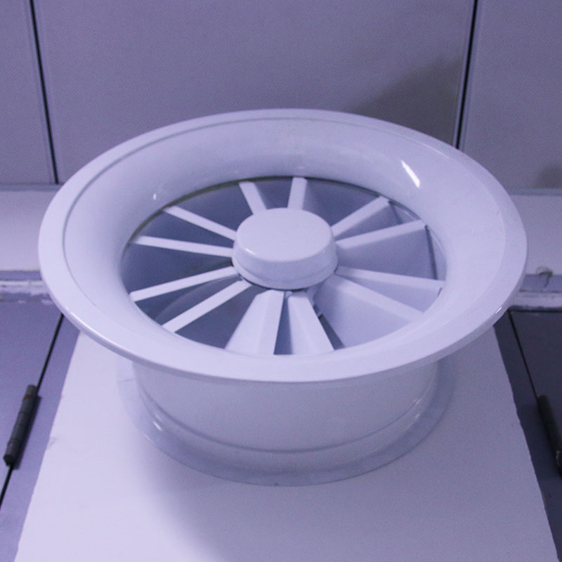 旋(xuán)流(liú)風口是空調係統中的一個送風工具。在空調通風係統中可用作大風量,大(dà)溫差送風(fēng)以減少(shǎo)風口數量,安裝在天花板或頂棚上,可用於3米以內低空間(jiān),也可(kě)用二種高度大麵積送風